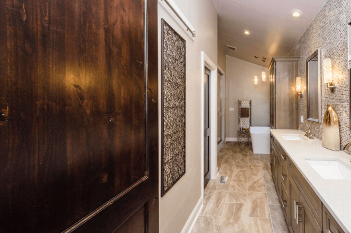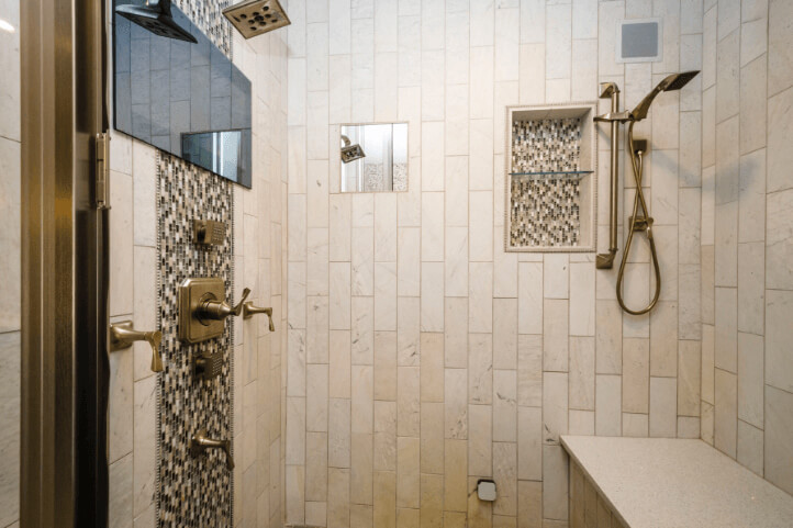 There were some significant obstacles for this project, specifically in the shower. The home itself was built on a slab, so all of the concrete floors had to be demolished to relocate the plumbing and heat runs.A gas furnace had to be relocated to make room for the greatly enlarged bathroom. Despite the upheaval, Patti says both contractors and clients were flexible, supportive, and patient.