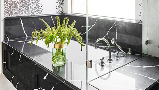 With all of her clients, Braker aims to design for longevity and wellness, incorporating furniture and décor that is flexible enough to support the essentials such as higher vanities, wall-mounted faucets, custom drawers and cabinets and more. Steam fits seamlessly into her plans for a wellness-oriented, long-lasting design.